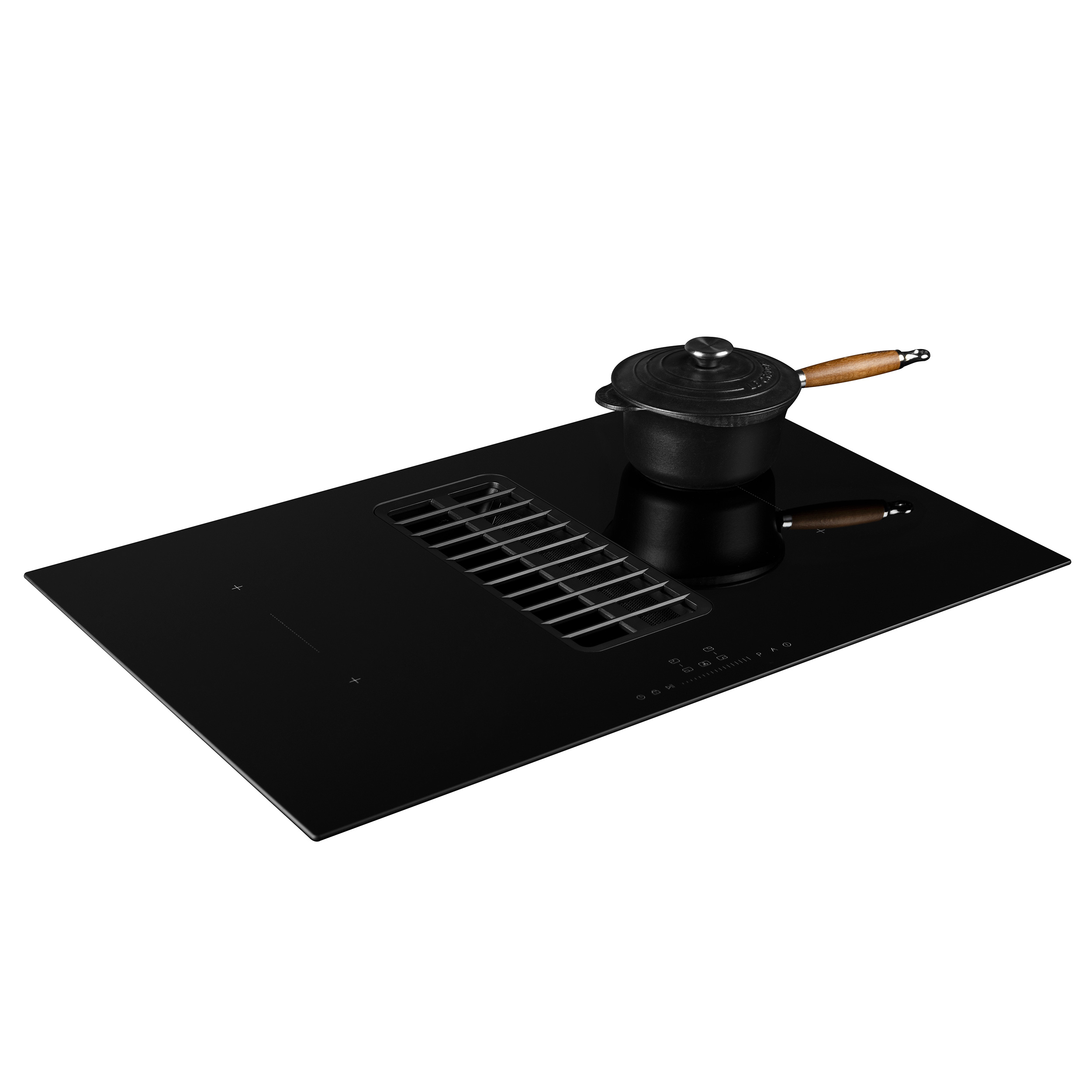 Kogeplade med integreret emhætte. Med intern motor - Lige kant, sort glas - 800 mm - A+ - For aftræk