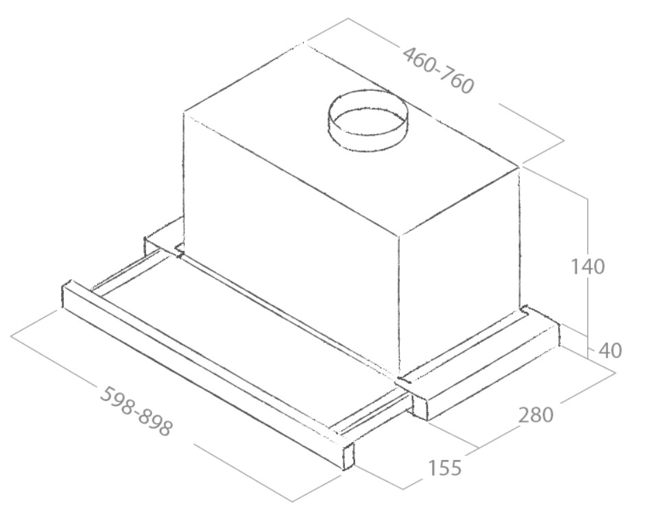 Udtræksemhætte. Med intern motor - Rustfrit stål / grå - 900 mm