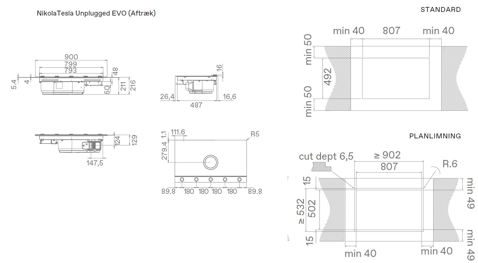 • Indbygning (BxDxH): 807 x 492 mm
