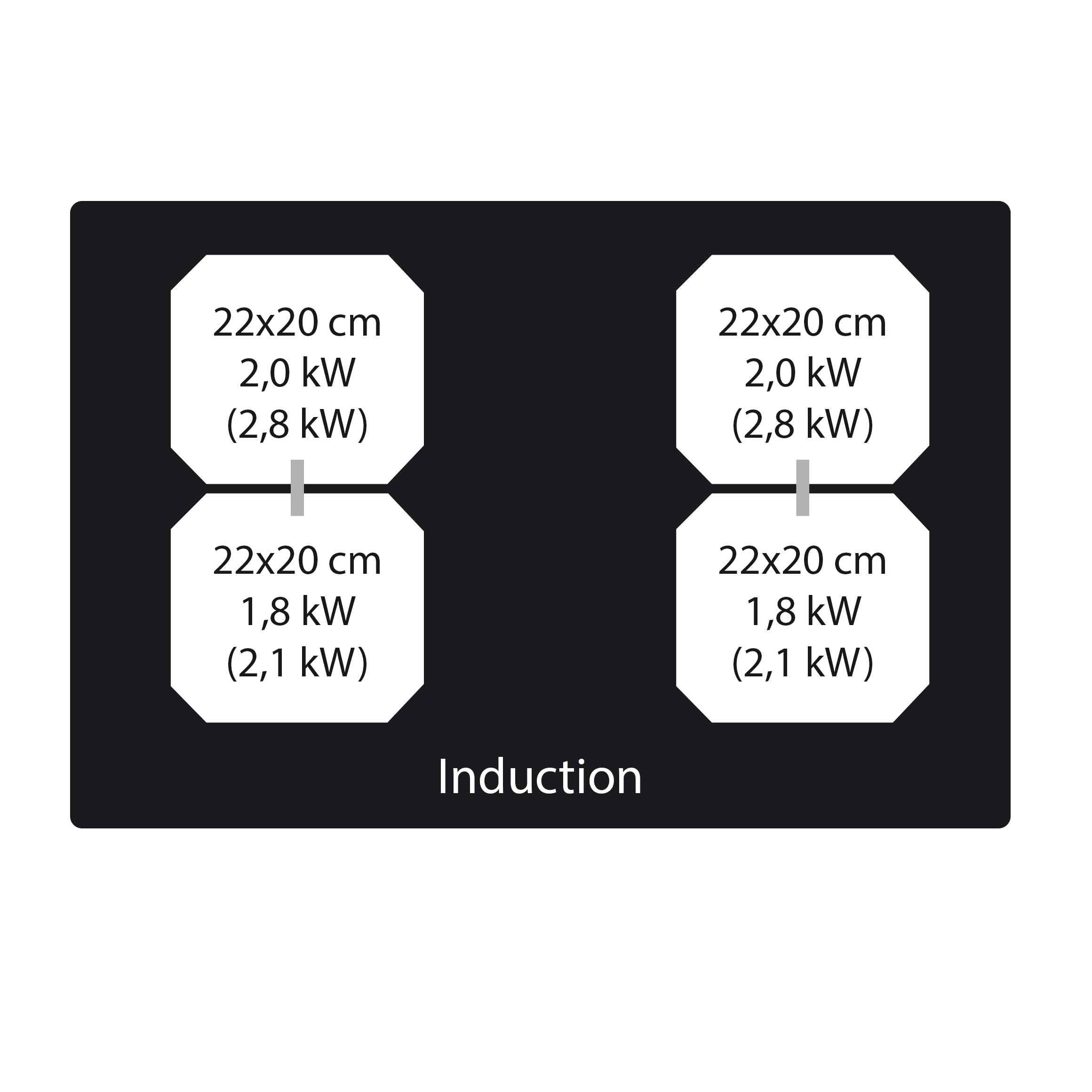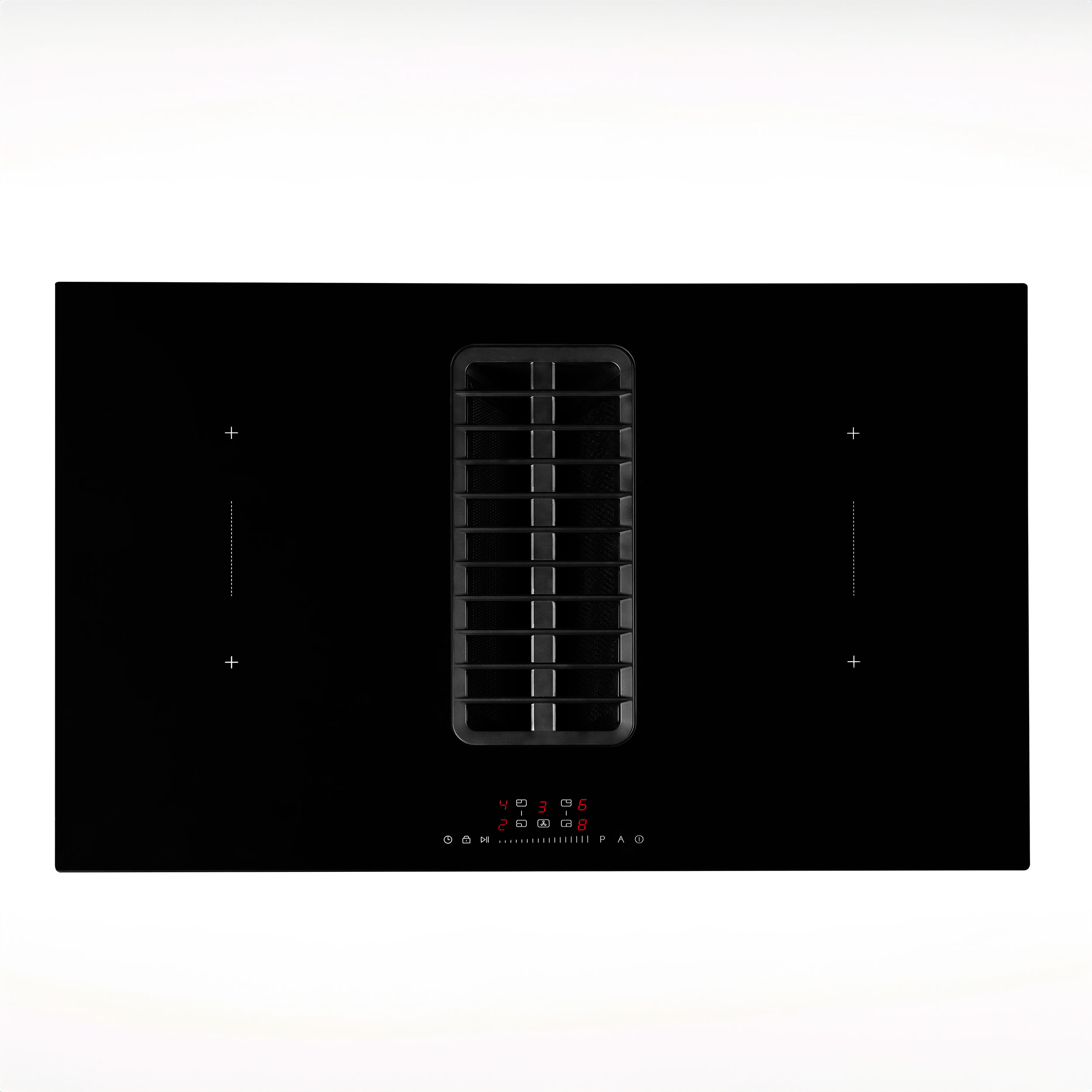 Kogeplade med integreret emhætte. Med intern motor - Lige kant, sort glas - 800 mm - A+ - For aftræk