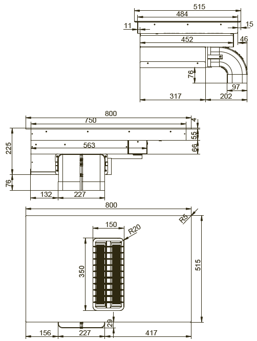 • Produkt (BxDxH) 800 x 515 x 255 mm