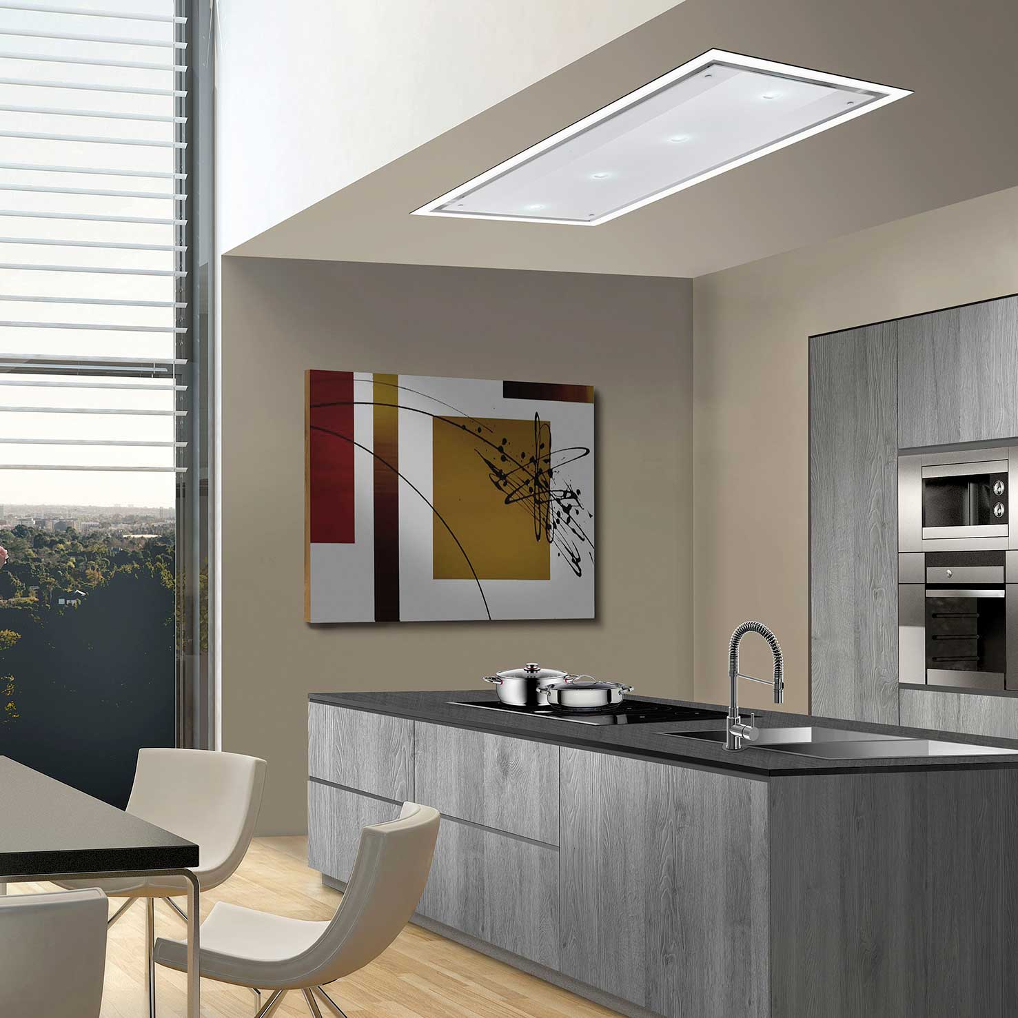 Emfang for indbygning i loft. For ekstern motor som købes separat - Hvid / Crystal white glas - Leveres med fjernbetjening - 1180 mm