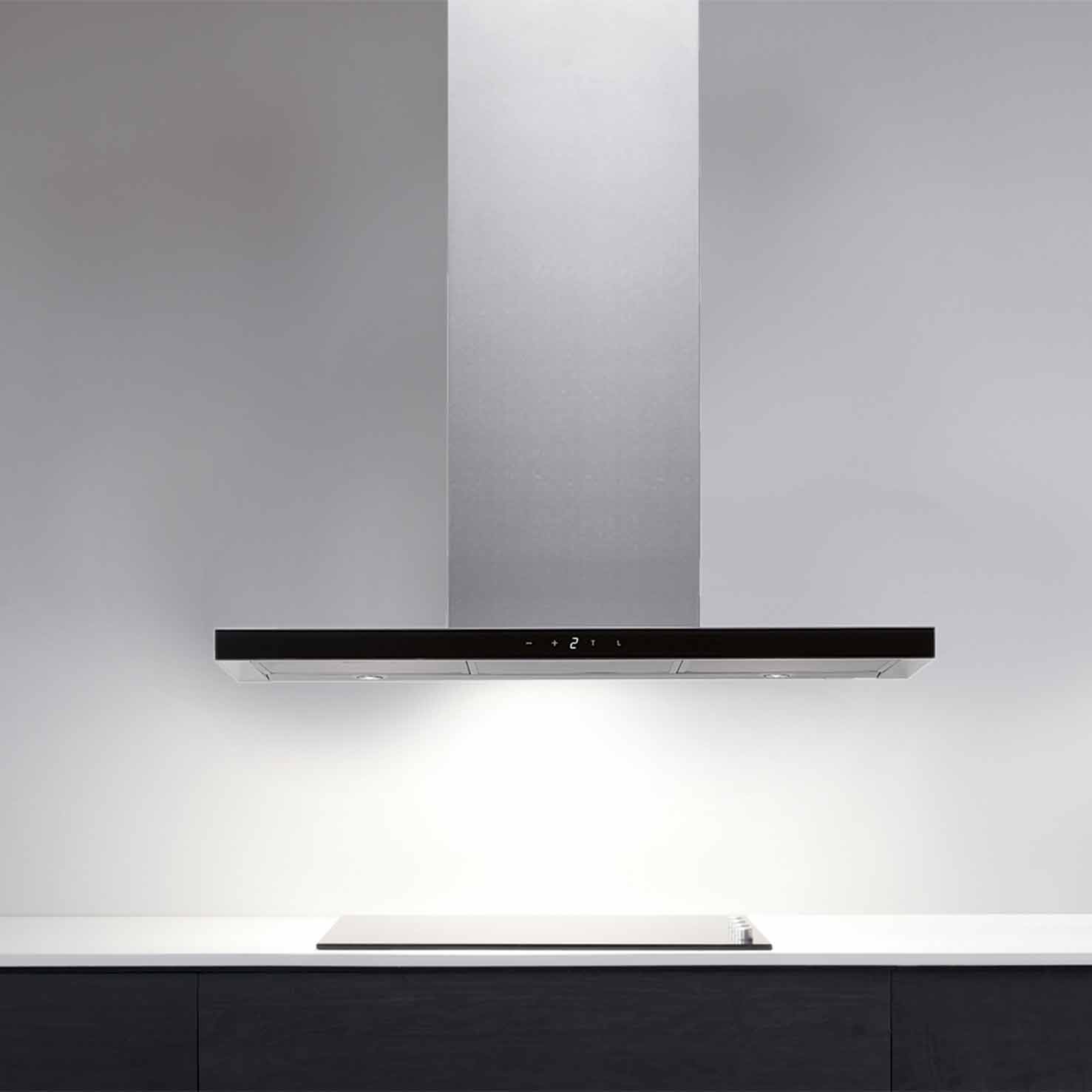 Vægmonteret emfang. Med intern motor - Rustfrit stål / sort glas - 900 mm - A