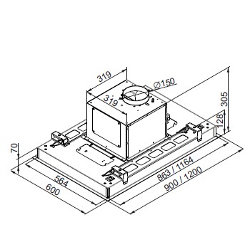 - Produkt (BxDxH) 900 x 600 x 305 mm
