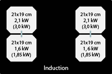• Note: 2 kogezoner: 21 x 19 cm / 2.100 W (3.000 W) + 2 kogezoner: 21 x 19 cm / 1.650 W (1.850 W). Rørføring medfølger ikke. Må købes separat. Der er afrundede hjørner og modellen kan enten nedlægges eller integreres i bordpladen. Når det er vigtigt at kunne fokusere på madlavning, kan du aktivere Autocapture-funktionen. Emhættens sugestyrke justeres automatisk afhængig af antallet samt effekten af de kogezoner, som er i brug.
