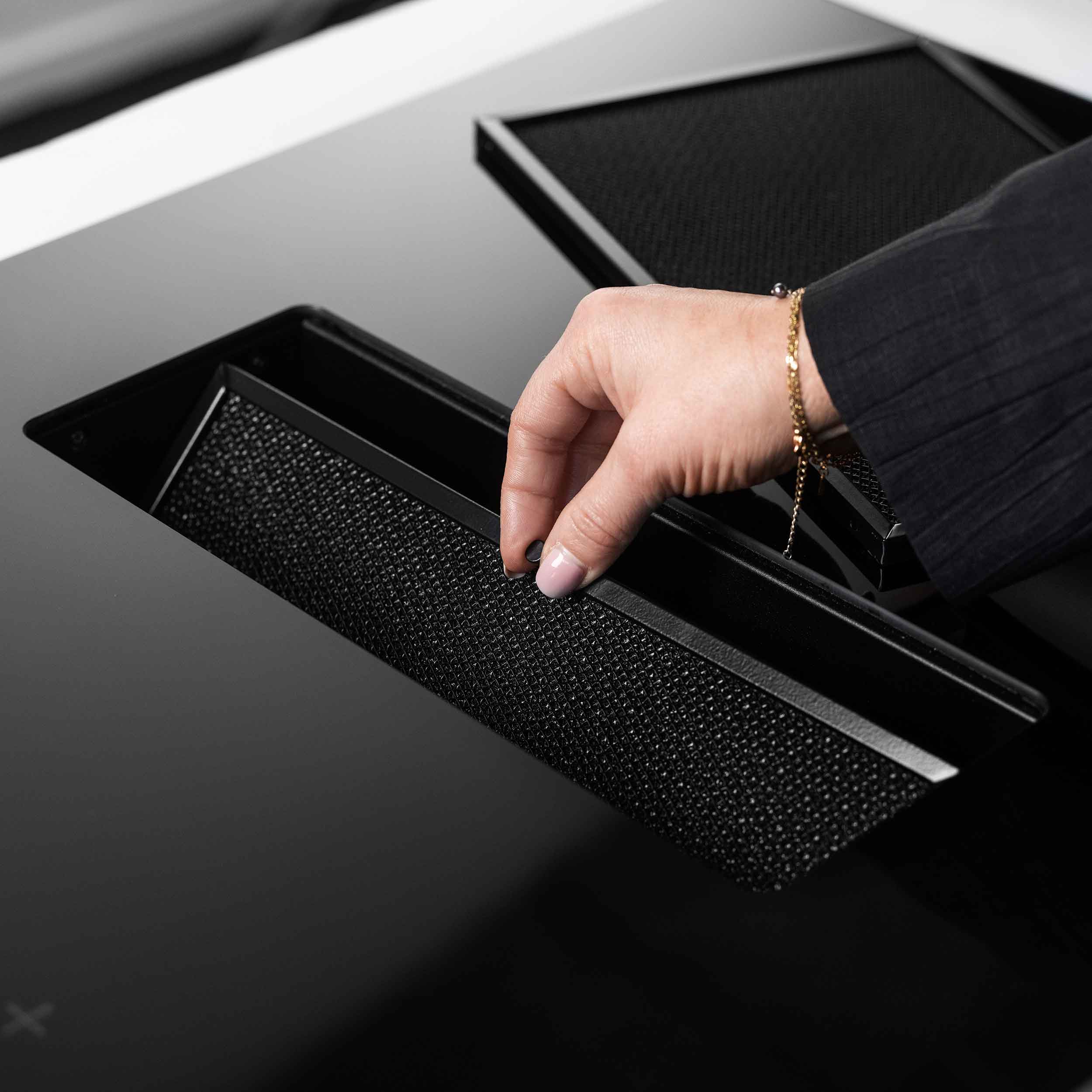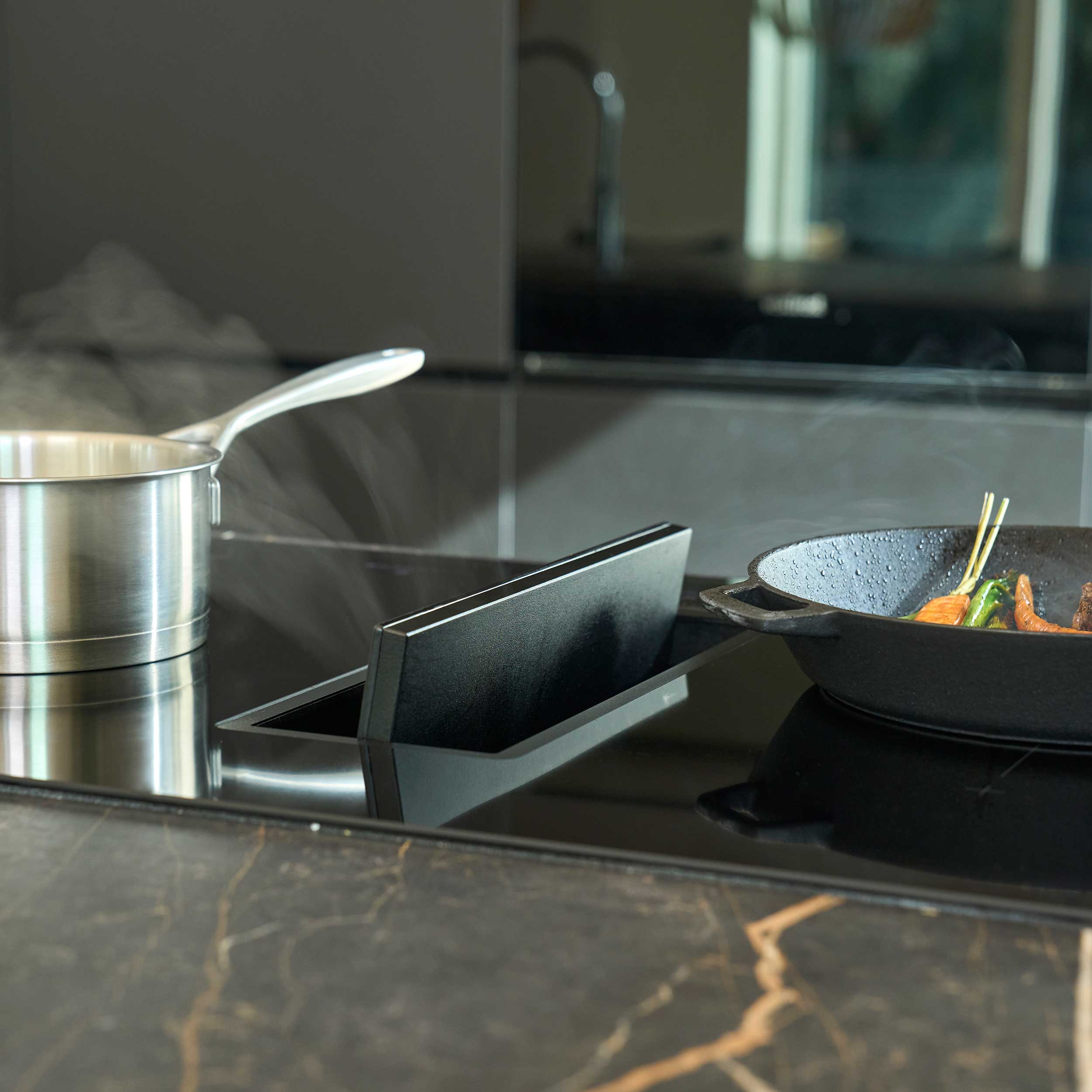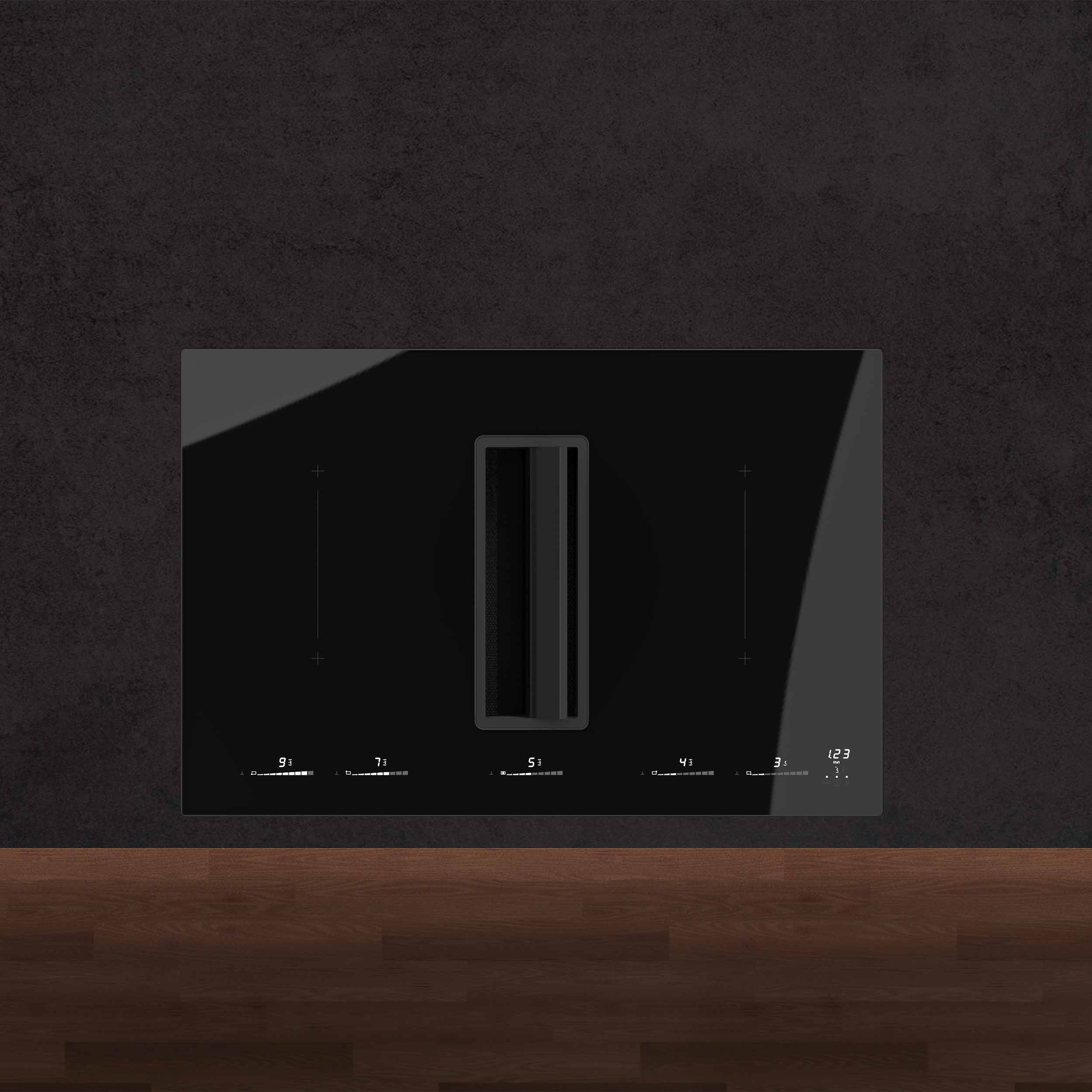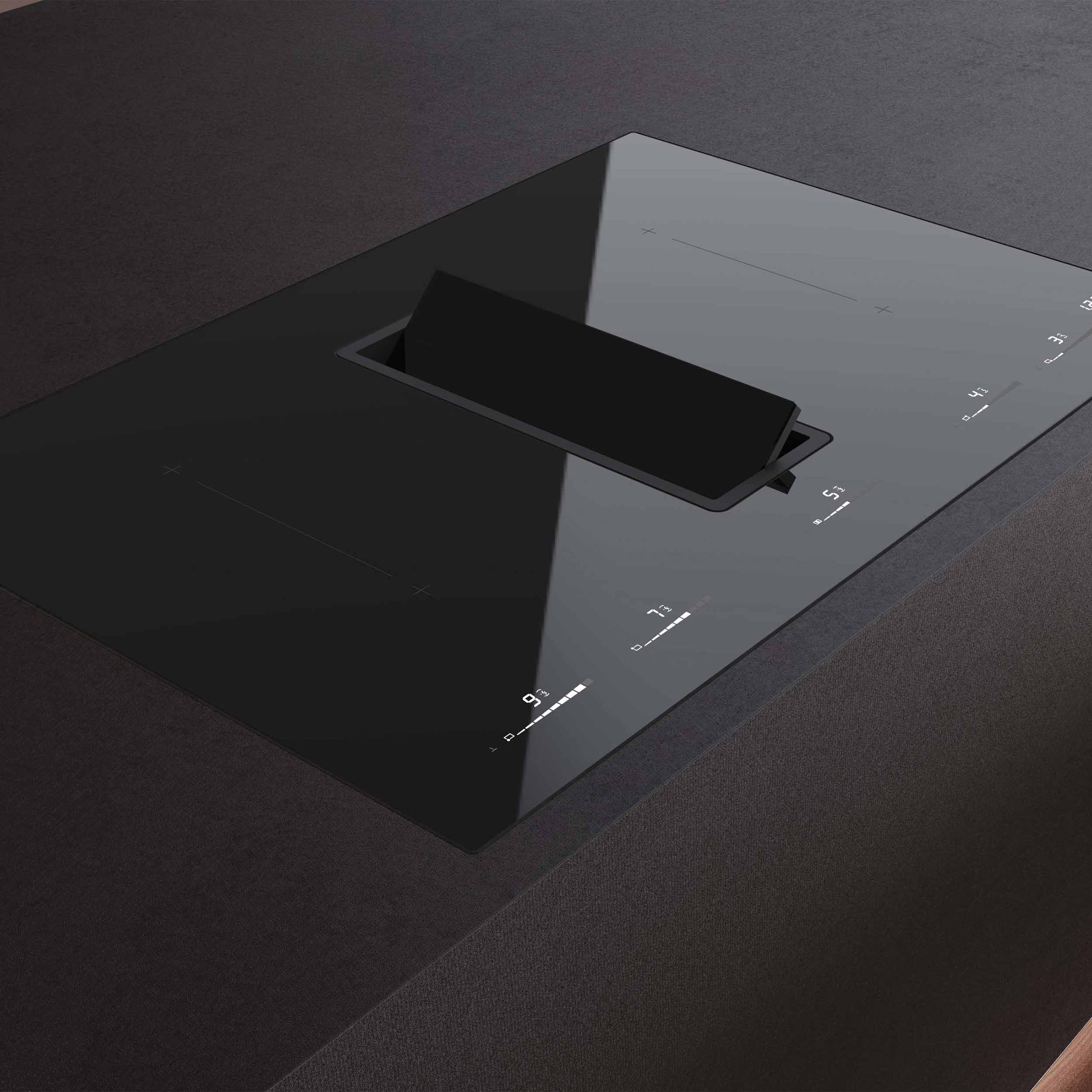 Kogeplade med integreret emhætte. Med intern motor - Total black glas - 780 mm - Model for recirkulation.
