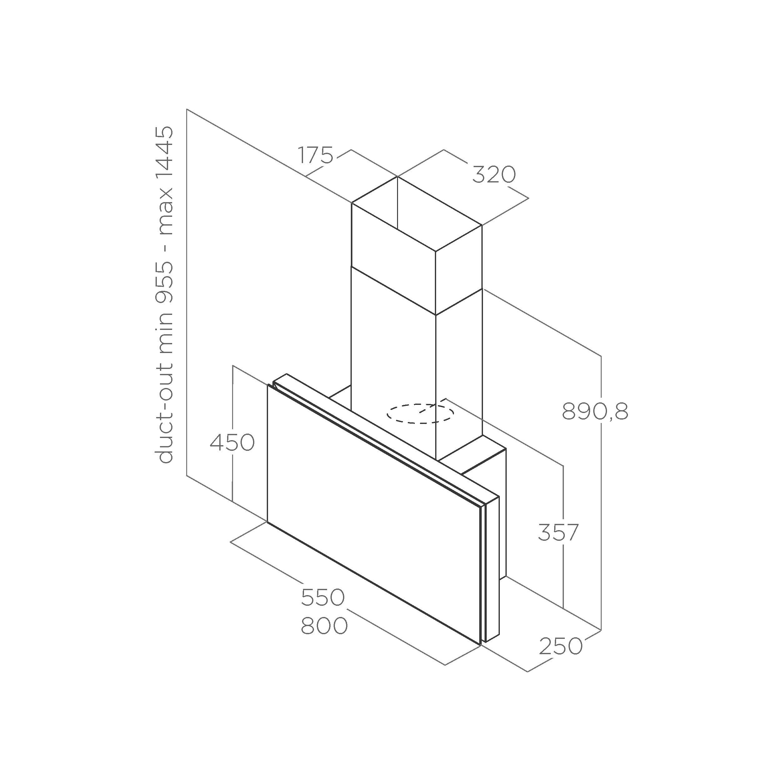 Vægmonteret emfang. Med intern motor - Sort / sort glas - 550 mm - A - Skorsten købes separat - Model for recirkulation.