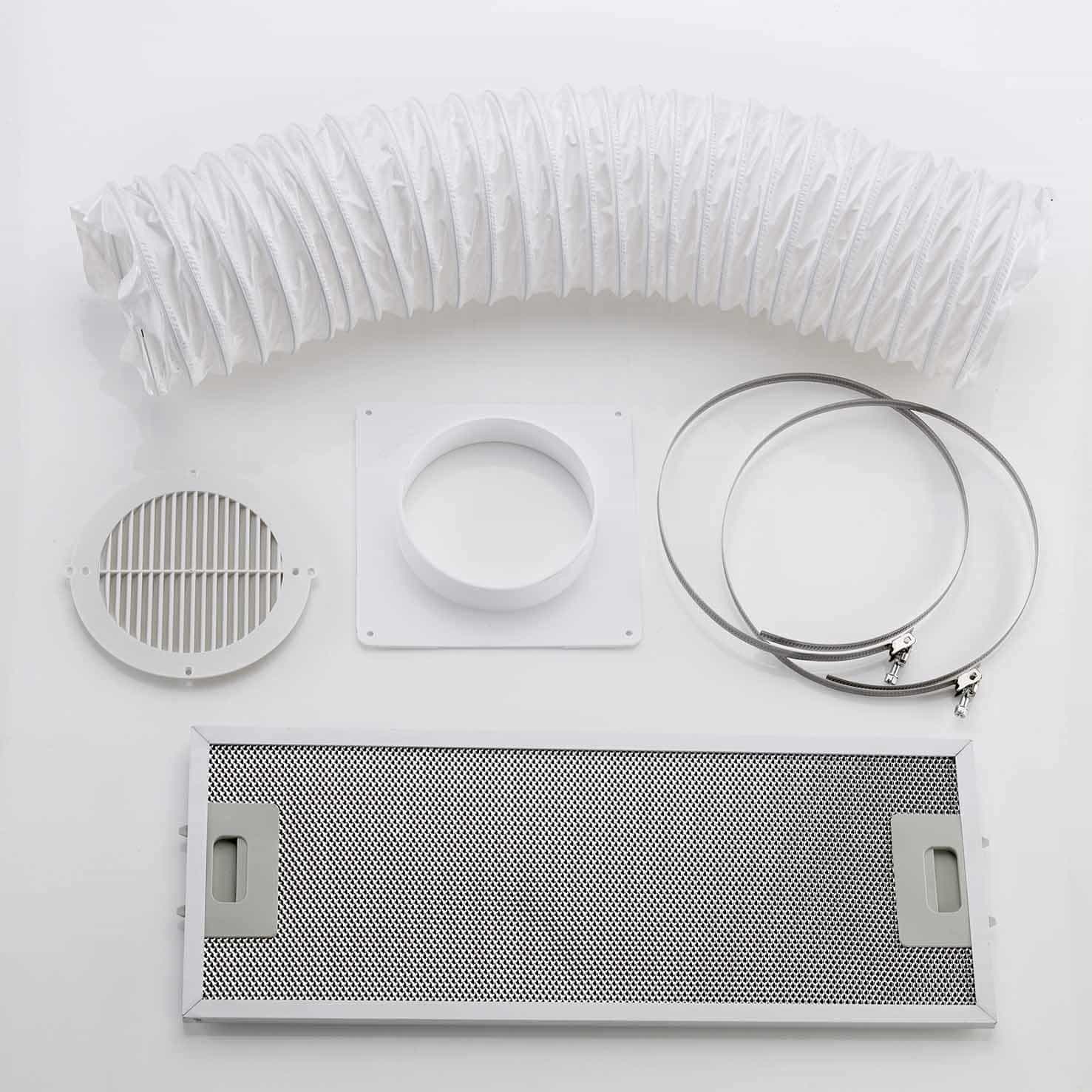 0.8 m plast flexslange, 2 spændebånd, 1 recirkulationsfilter, 1 murflange