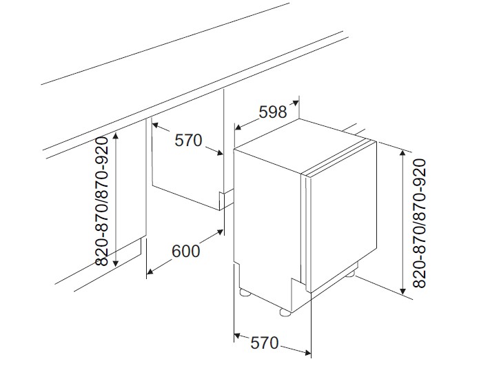 • Produkt (BxDxH) 598 x 570 x 820 - 920 mm